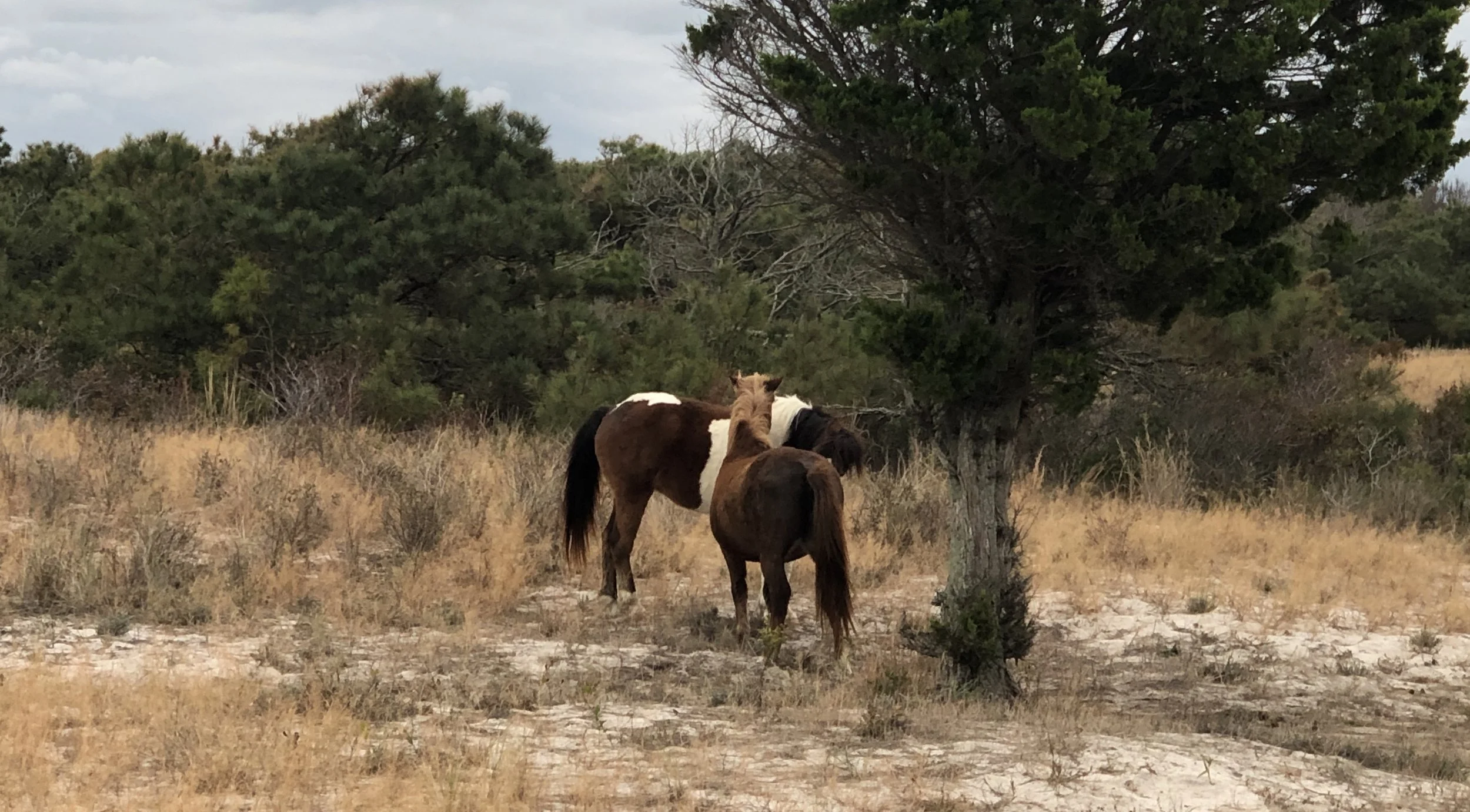Assateague is a national park and at great pains to protect the ponies. Speed limits are fifteen miles an hour. Visitors are instructed to stay a schoolbus length away. Visitors to the park live in a kind of parallel universe, generally unnoticed by the ponies. There is a sense of removal.