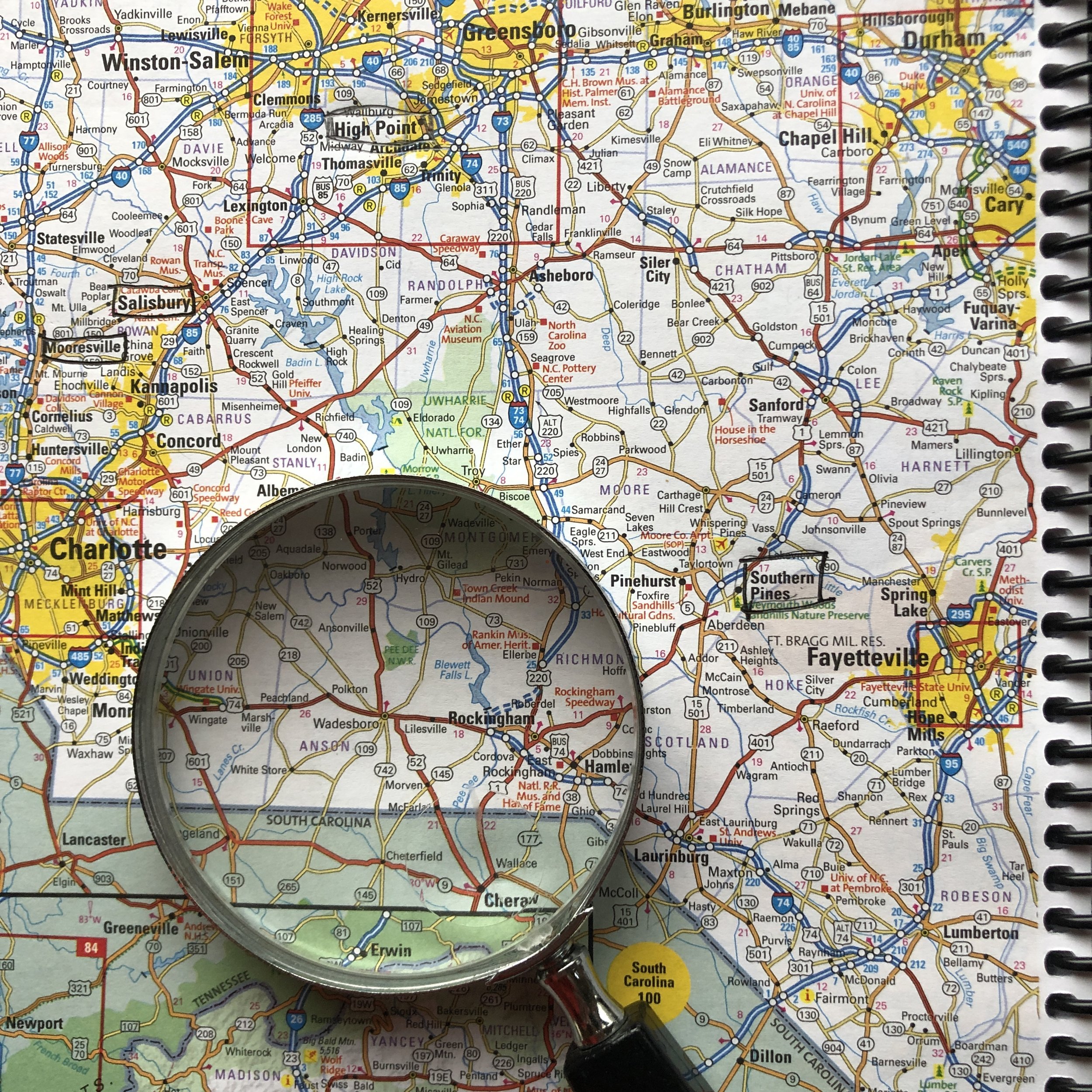 Charting our course between the “open-road” and having a place to sleep, so far we’ve avoided Walmart and Cracker Barrel. No doubt the time will come.