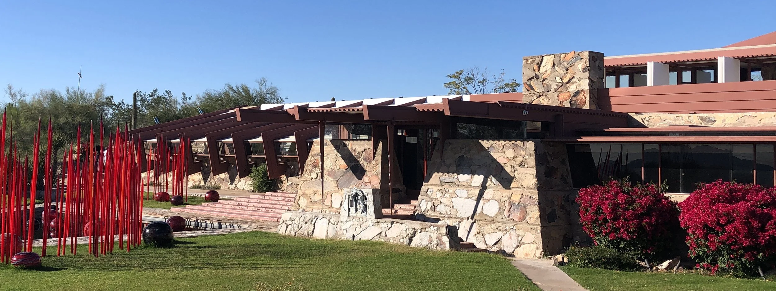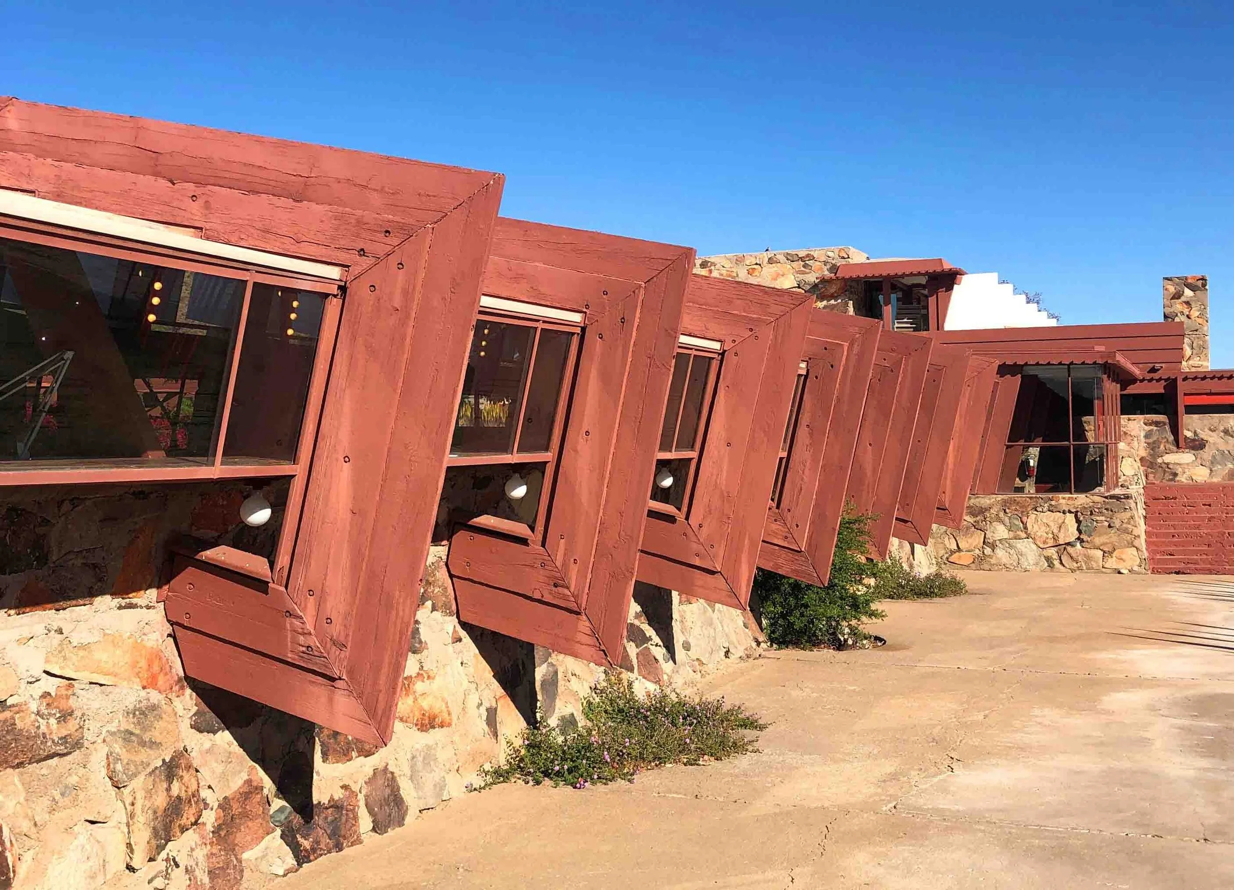 In many ways, Taliesen West is a kind of geometric interpretation of nature, an expression of what Wright meant by an "organic” architecture. It is a dance between Wright and the landscape that sometimes seems like symmetry, other times sometimes a submission. It is relentless, unending, and comprehensive. No detail is left undesigned. No tree, rock or plant is not asked to pose for the audience.